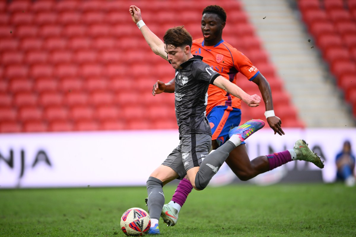 The Roar otherwise looked most threatening from set pieces. Their captain Jay O’Shea dragged a 25-yard free kick narrowly wide of the left post in the 19th minute and he registered the first shot on target shortly after the half hour mark from a free kick just outside the Nix box. Oluwayemi made a good save to push the shot away from danger.