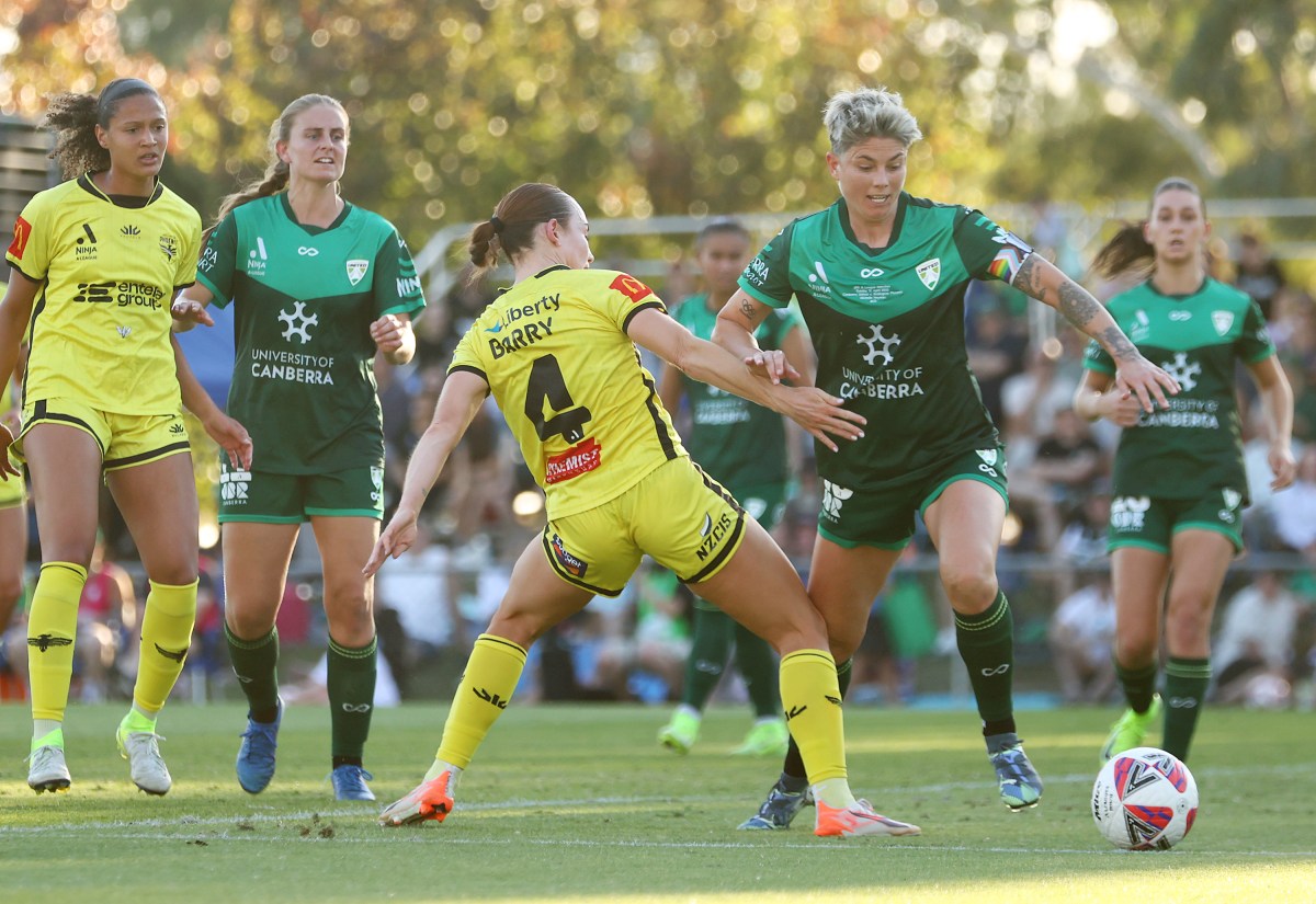 Canberra had the first shot at goal just over 60 seconds into the match, but a big block from Phoenix centre back Mackenzie Barry snuffed out the opportunity.