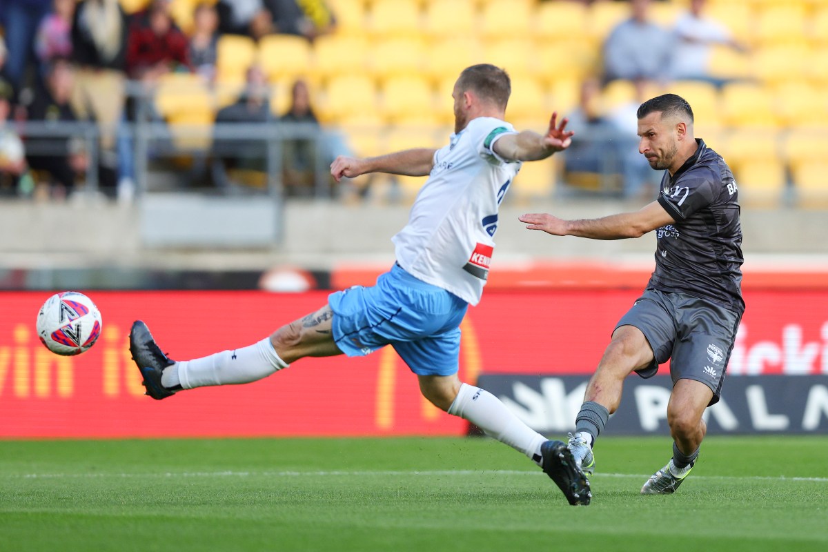 Barbarouses had another shot at goal 10 minutes later, but this time his thunderous attempt from the top of the box was well blocked by Sky Blues captain Rhyan Grant.