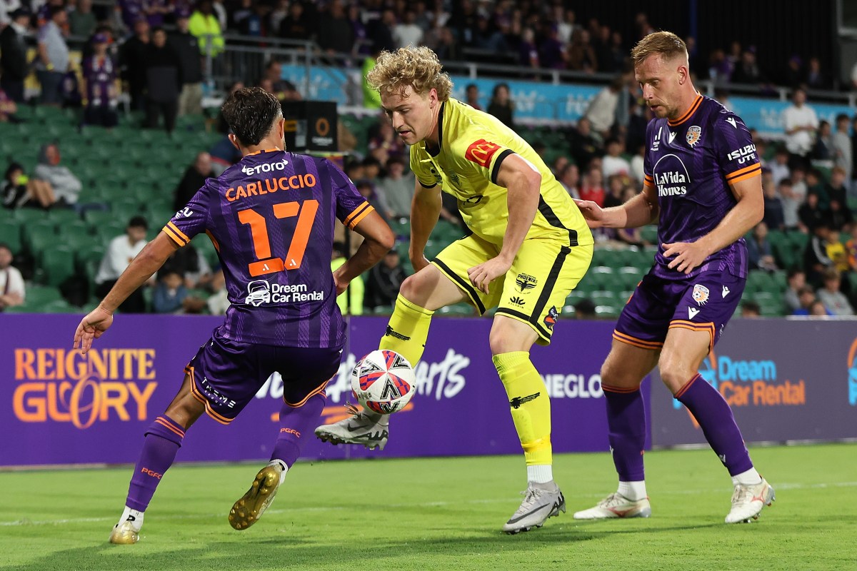 Perth nearly pulled a goal back instantly when Carluccio’s deflected cross-come-shot looked like it would find the bottom corner of the Wellington goal before Oluwayemi clawed the effort away to prevent a freak goal.